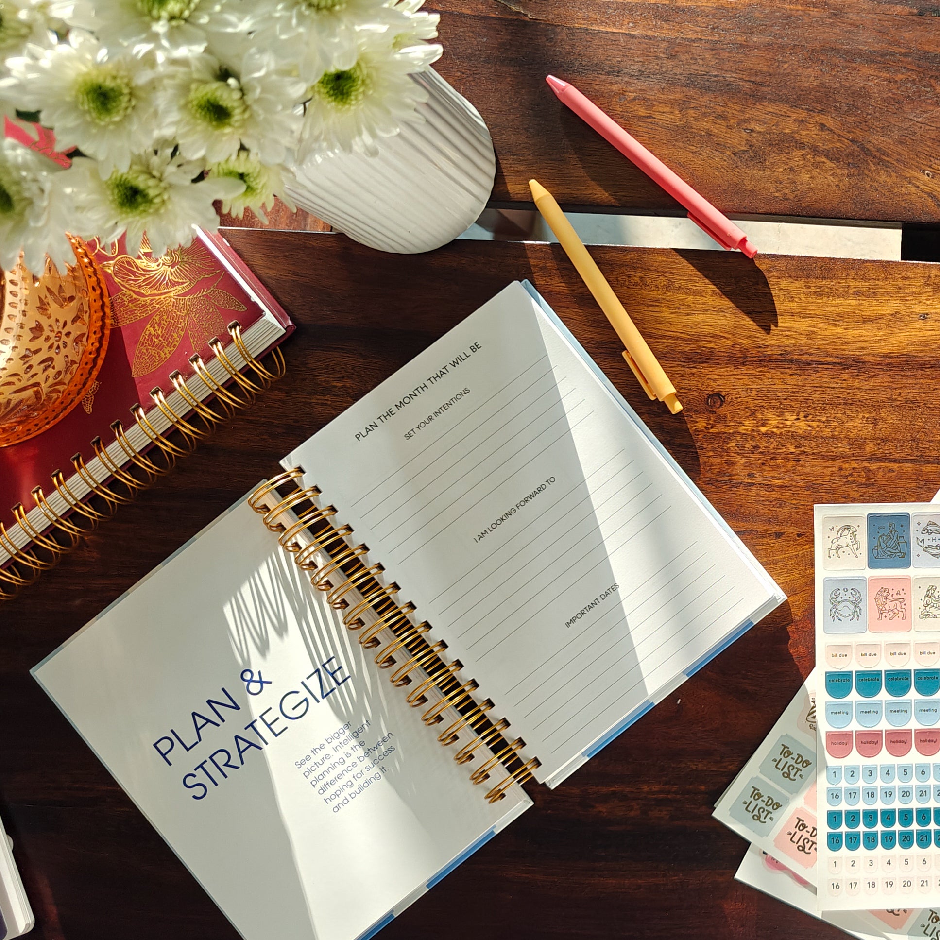 PAGE DESIGN: 12 Calendar Grid Spreads | 48 weekly planner spreads | Additional Pages Ruled Pages For Notes & Planning