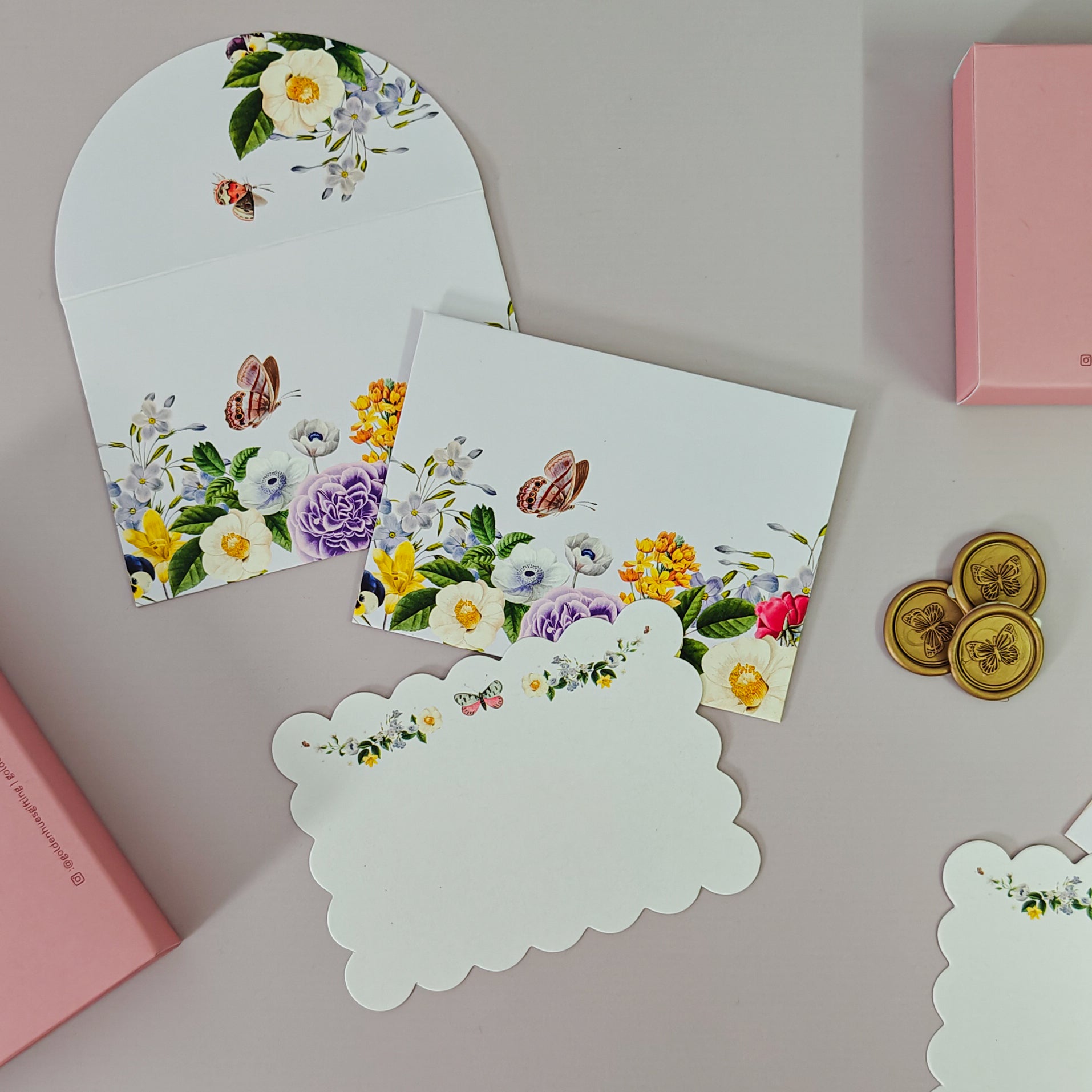 Our Lavender Dreams stationery set offers a sophisticated way to connect. With its soft lilac hues and delicate floral motifs, it embodies nature's serene beauty. Perfect for thank you notes and personal messages, it ensures your words are presented with timeless grace and exquisite beauty.