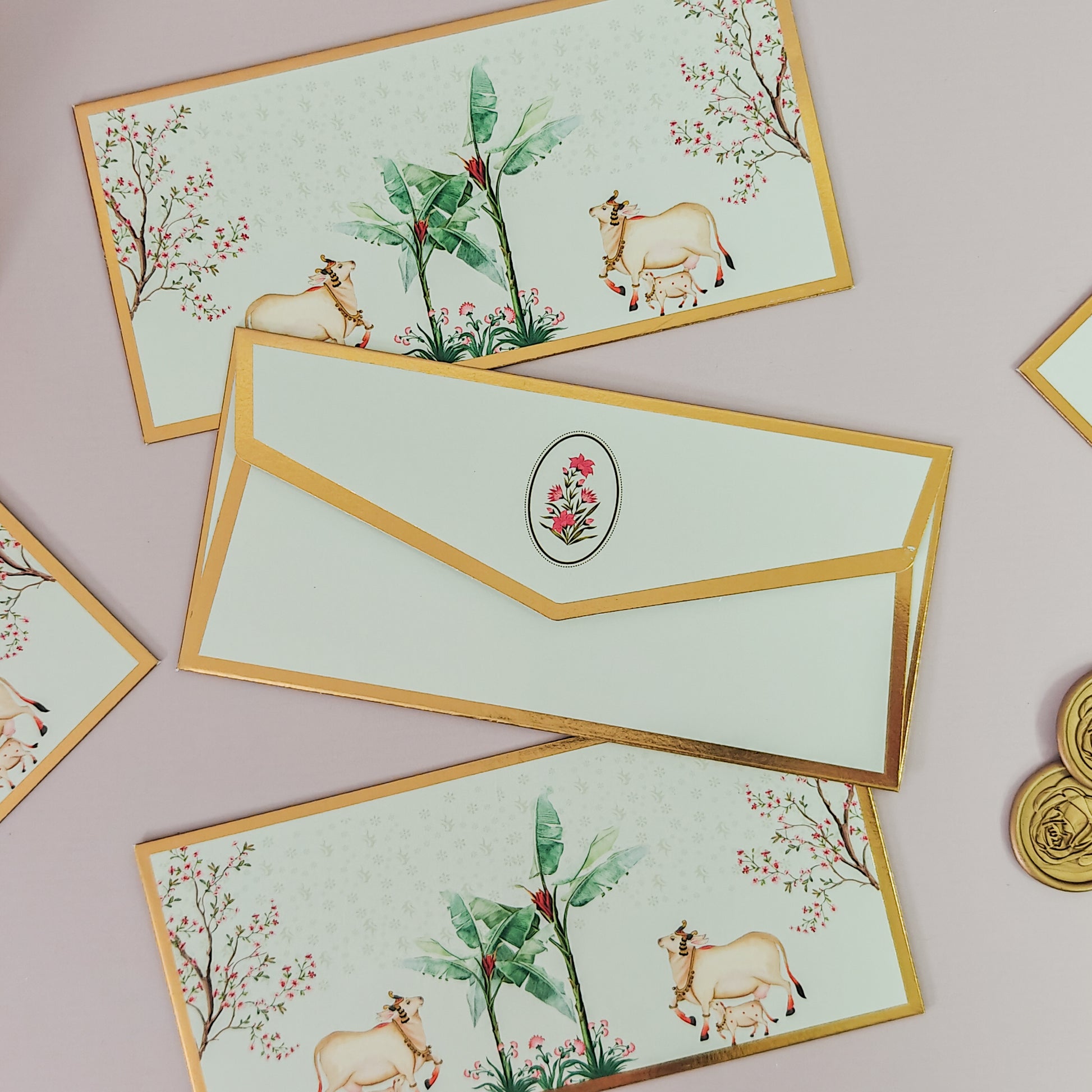 Pichwai Print Money Envelopes (Green)