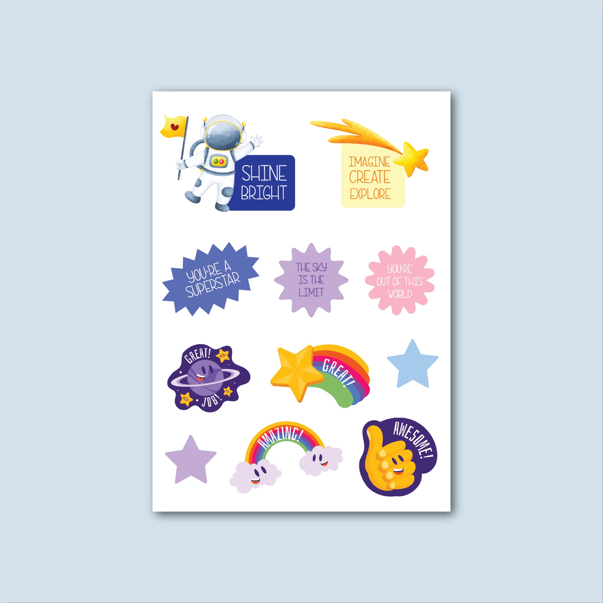 Blast off into fun! Let your imagination soar with this lively sticker book made for little explorers and future astronauts. Meet friendly aliens, zoom past rocket ships, and stick sparkling stars and mysterious planets wherever you like. With pages bursting with space scenes to complete and adventures to dream up, it’s the perfect way to jazz up notebooks, spin cosmic tales, or add a splash of space magic anywhere!