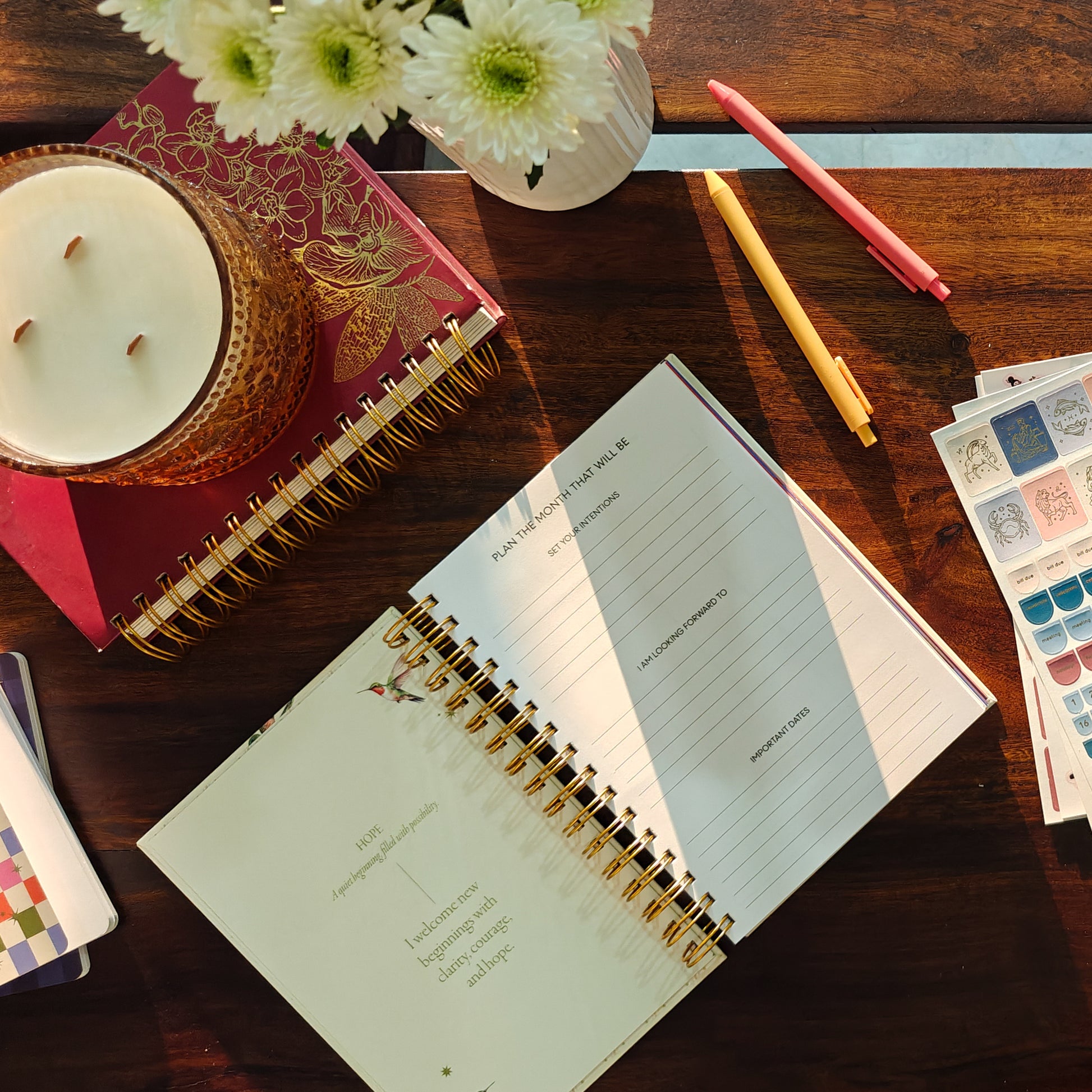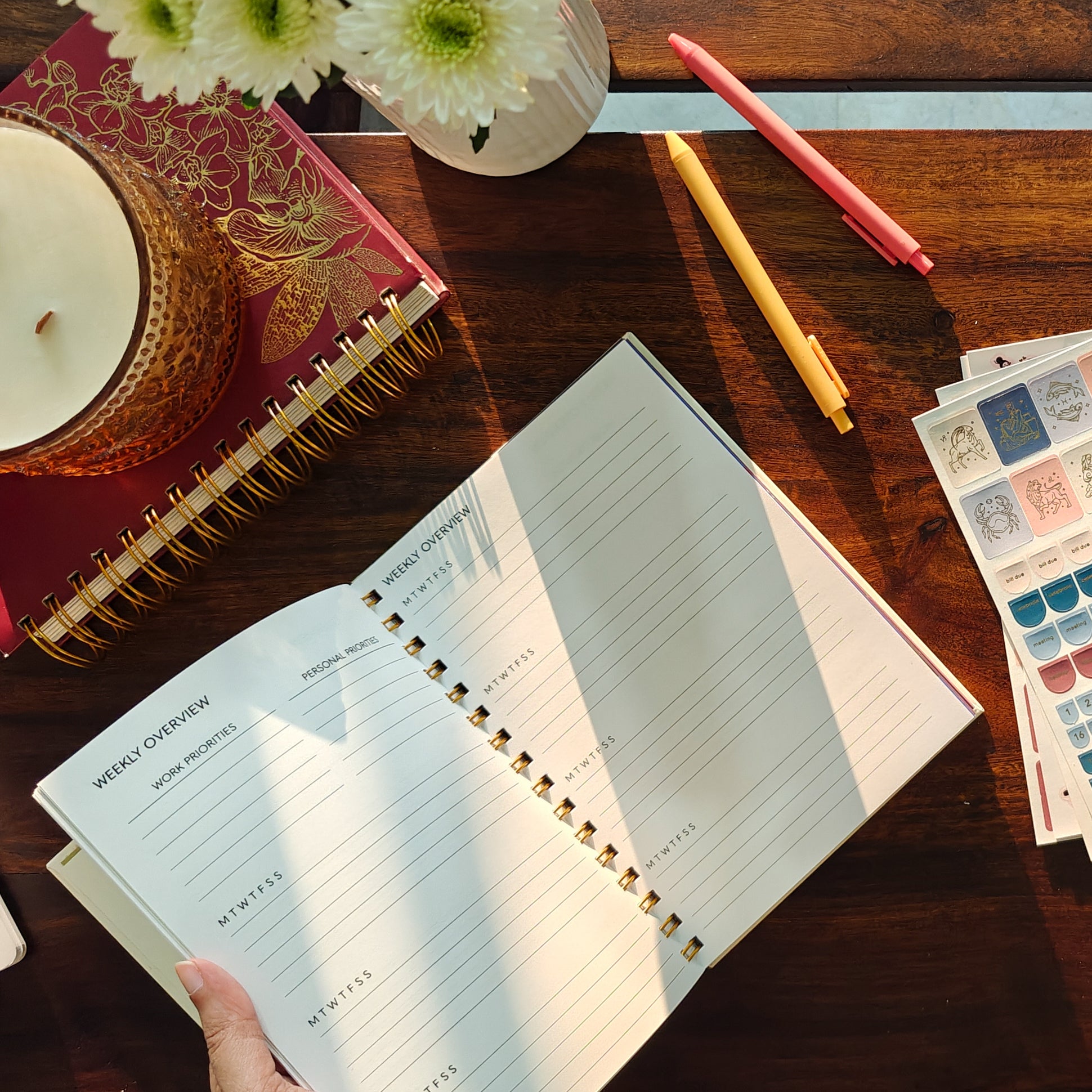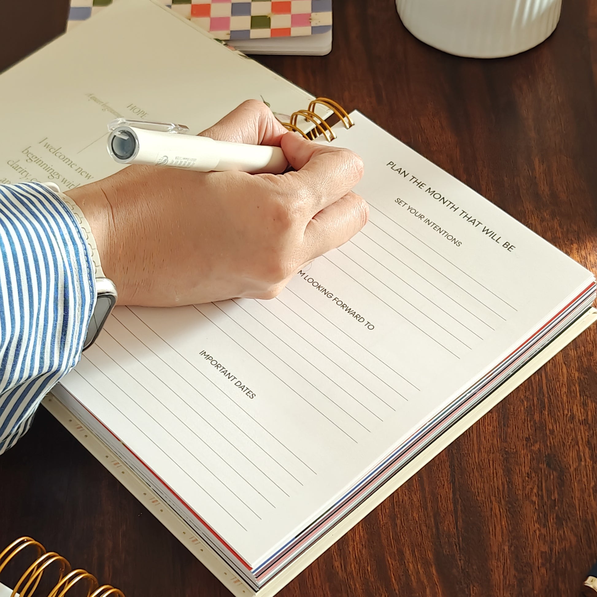 The Undated Journal offers the ultimate freedom in planning. Designed for flexibility, it allows you to start, pause, and resume your organization journey on your own terms. With no fixed dates, you never have to worry about wasted pages or missed days - just pick up a pen and plan for today.
